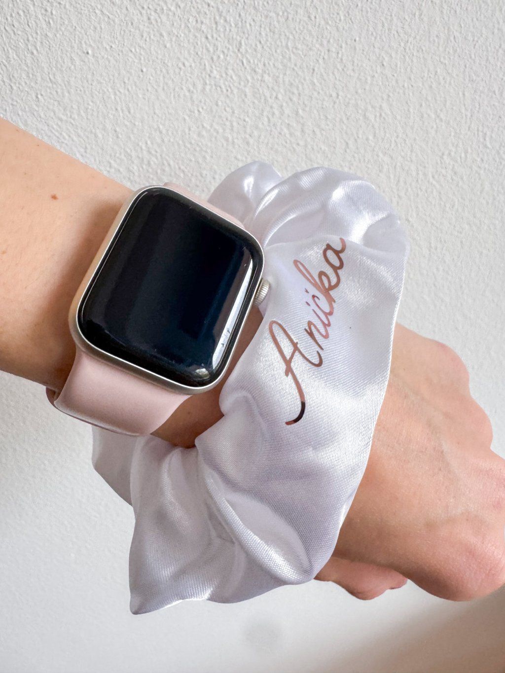 Personalizovaná látková gumička do vlasů s vlastním jménem v elegantní rosegold barvě. Perfektní dárek pro družičky, svědkyně, kamarádky – nebo jen tak pro radost!