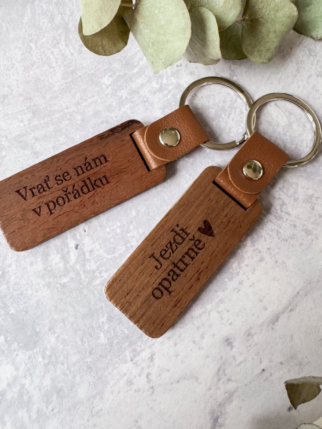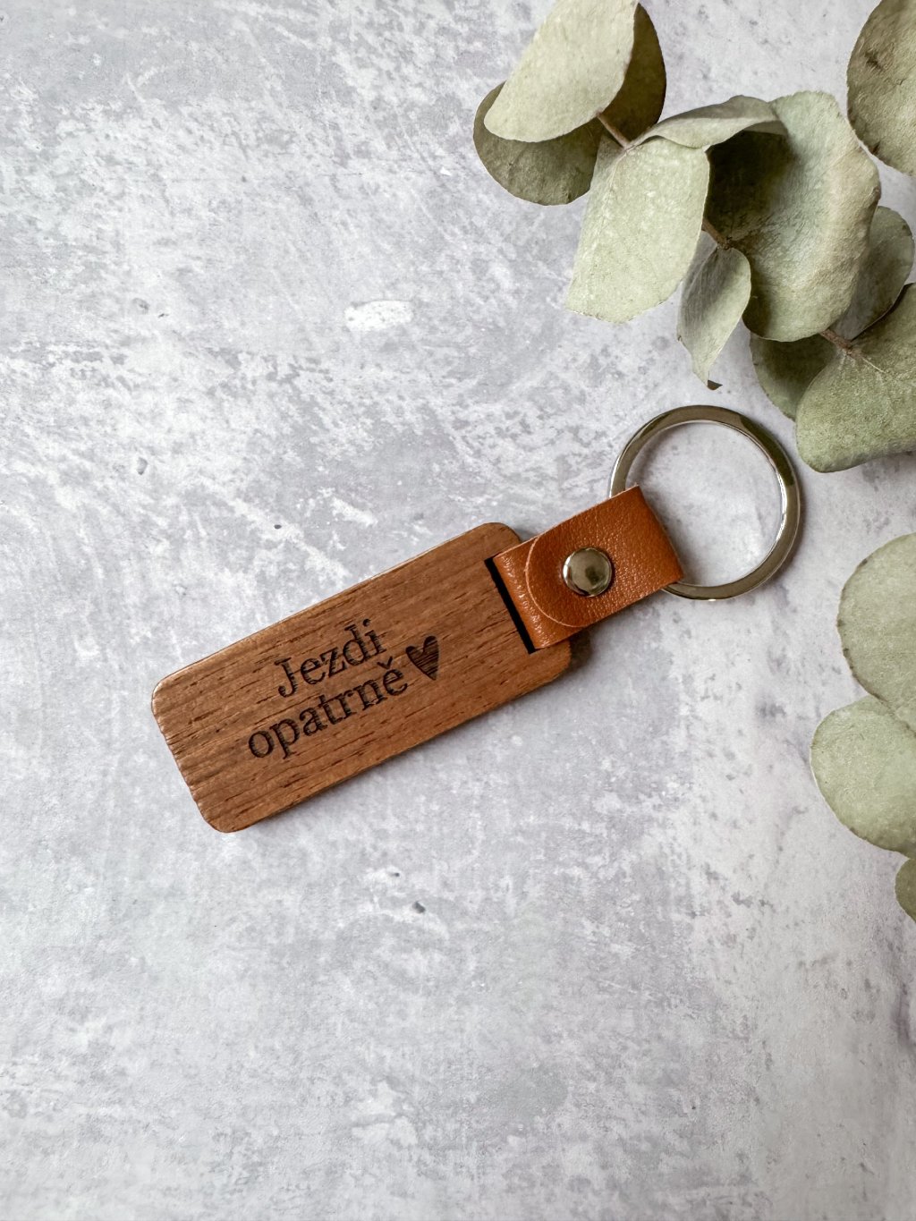 Drobnost, která potěší – dřevěná klíčenka s koženým poutkem a gravírovaným vzkazem je skvělým dárkem pro každého muže, který ocení jedinečný design a osobní dotek.