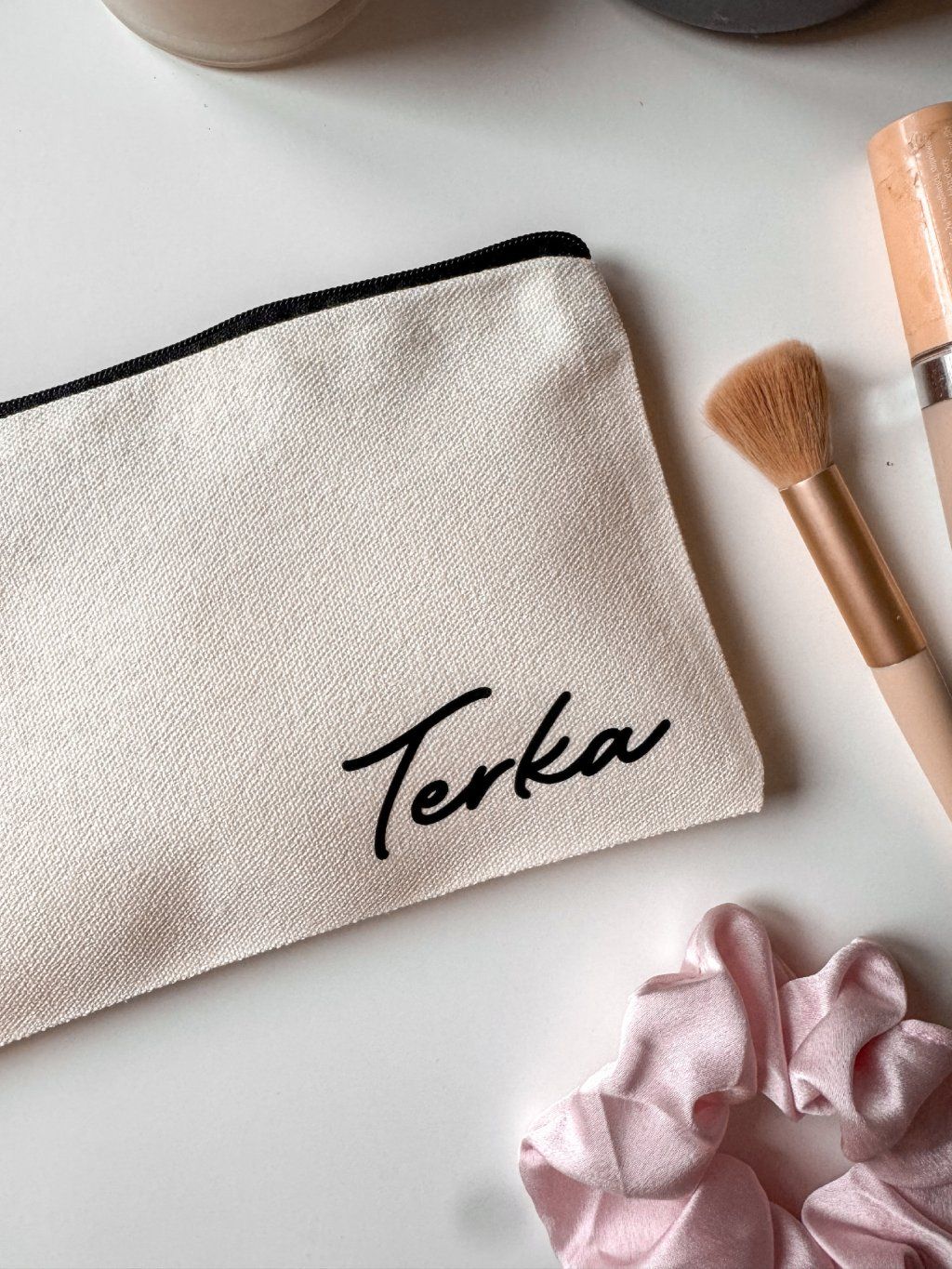 Vytvořte si jedinečnou kosmetickou taštičku přesně podle svých představ! Ať už hledáte originální dárek nebo stylový doplněk pro sebe, tato personalizovaná taštička je ideální volbou. Na taštičku vám nažehlíme jakékoliv jméno, oblíbený citát, motto nebo jiný text dle vašeho přání. Perfektní na kosmetiku, drobnosti do kabelky nebo cestovní nezbytnosti.