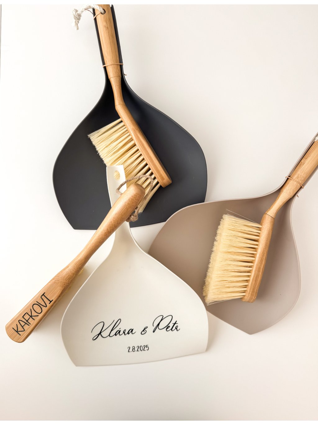 Personalizovaná svatební lopatka a smetáček se stanou nejen součástí svatebního dne, ale také trvalou památkou na okamžik, kdy jste začali svou společnou cestu. Díky jménům novomanželů a datu svatby získává tato svatební sada jedinečný osobní význam.