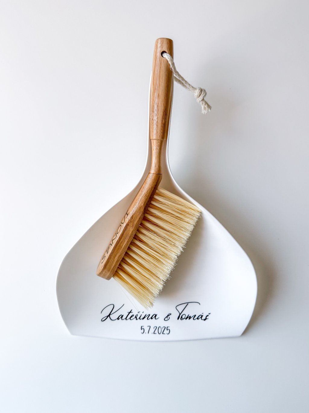 Personalizovaná svatební lopatka a smetáček jako symbol společného života. Jména a datum na lopatce, příjmení na smetáčku – krásná vzpomínka na váš velký den!