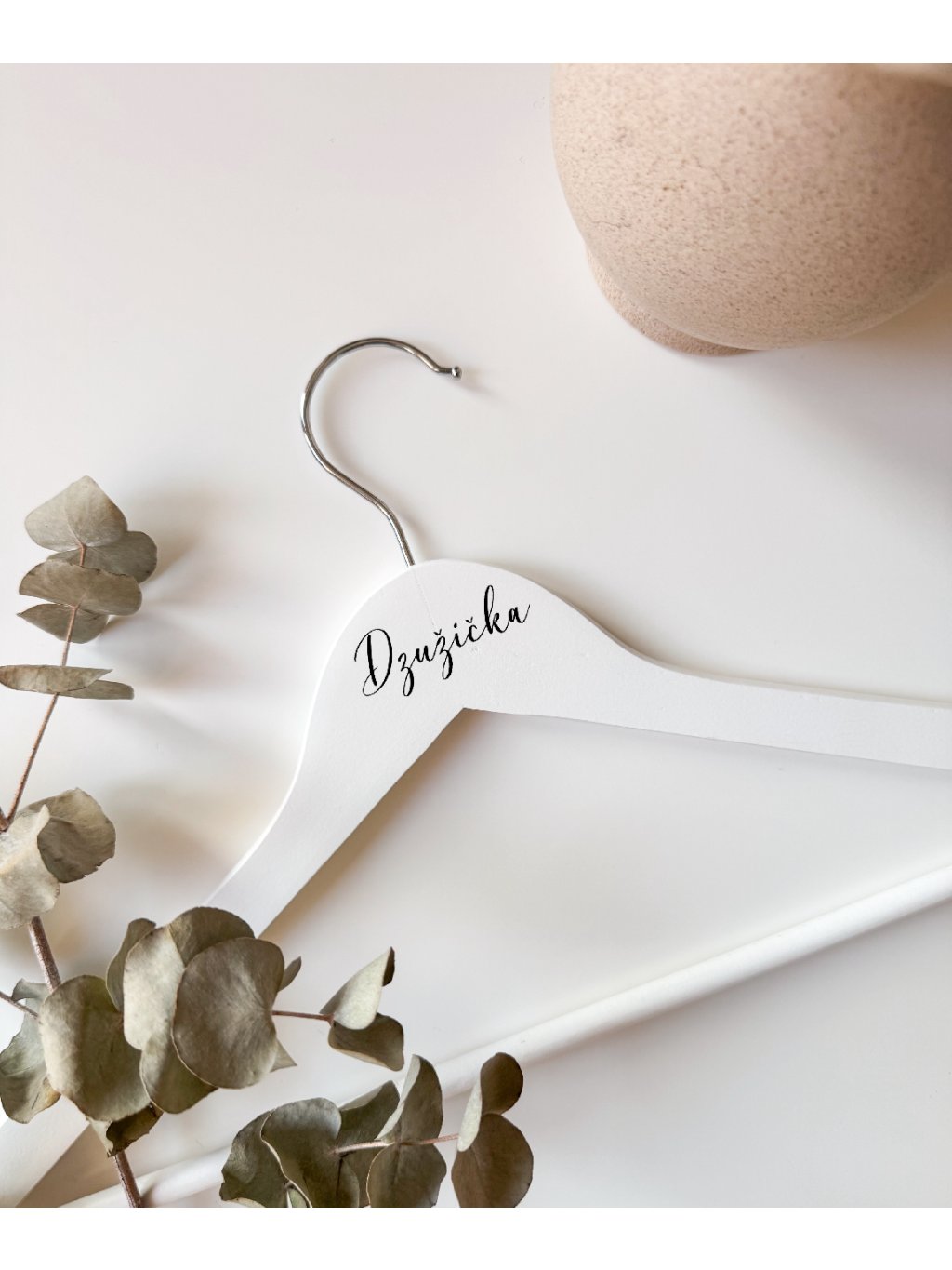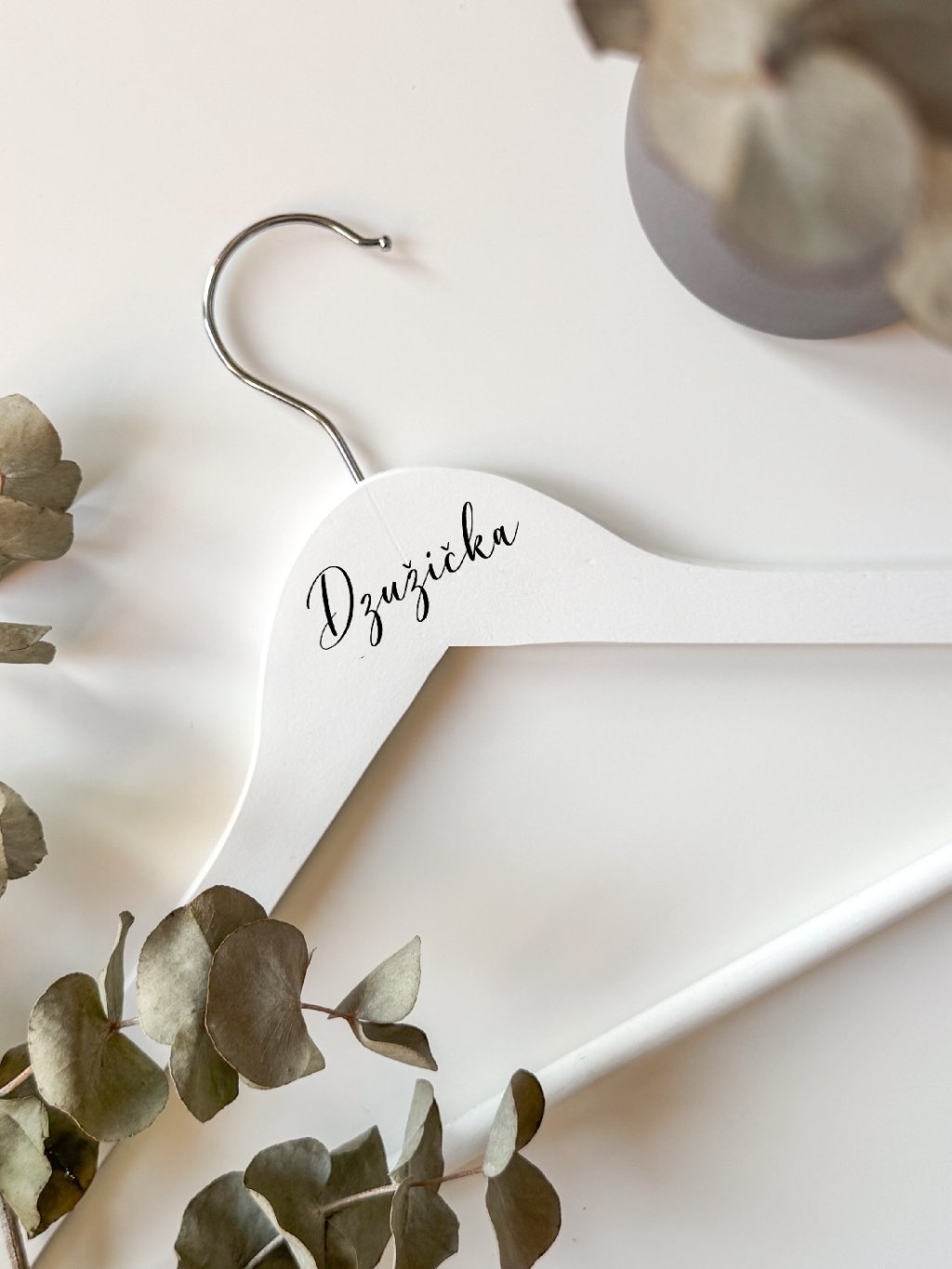 Dodejte svatebním přípravám elegantní a sjednocený detail v podobě svatebního ramínka s nápisem „družička“. Stylové ramínko je ideální pro zavěšení šatů družičky během svatebního dne a zároveň slouží jako krásný doplněk pro svatební focení z příprav, kde vynikne sladěný vzhled celé svatební party.