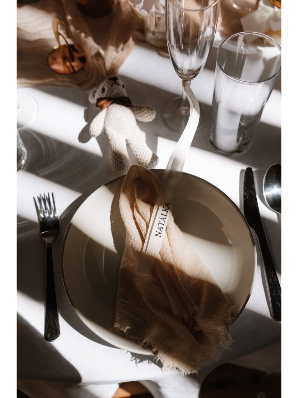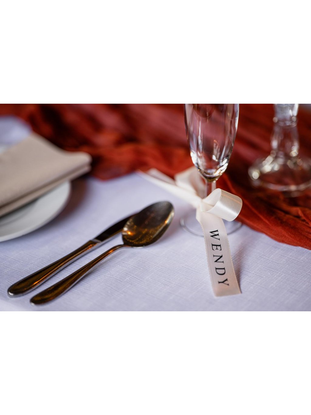 Proměňte atmosféru na svatbě v něco výjimečného. Naše svatební stuhy s jménem hosta nejen označí místo u stolu, ale zároveň doplní výzdobu a dodají každému detailu osobní a elegantní dotek.