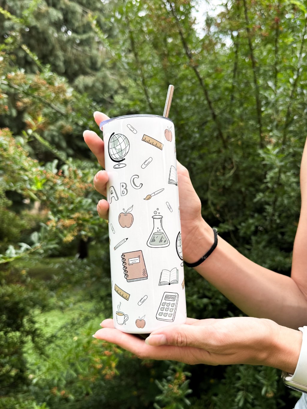 Tento nerezový termo kelímek s autorskou ilustrací pro učitele je důkazem, že i obyčejný doušek kávy nebo čaje může být malým rituálem. Design jsme tvořili my – od prvního nápadu až po finální potisk – s láskou k detailu a radostí z tvoření.