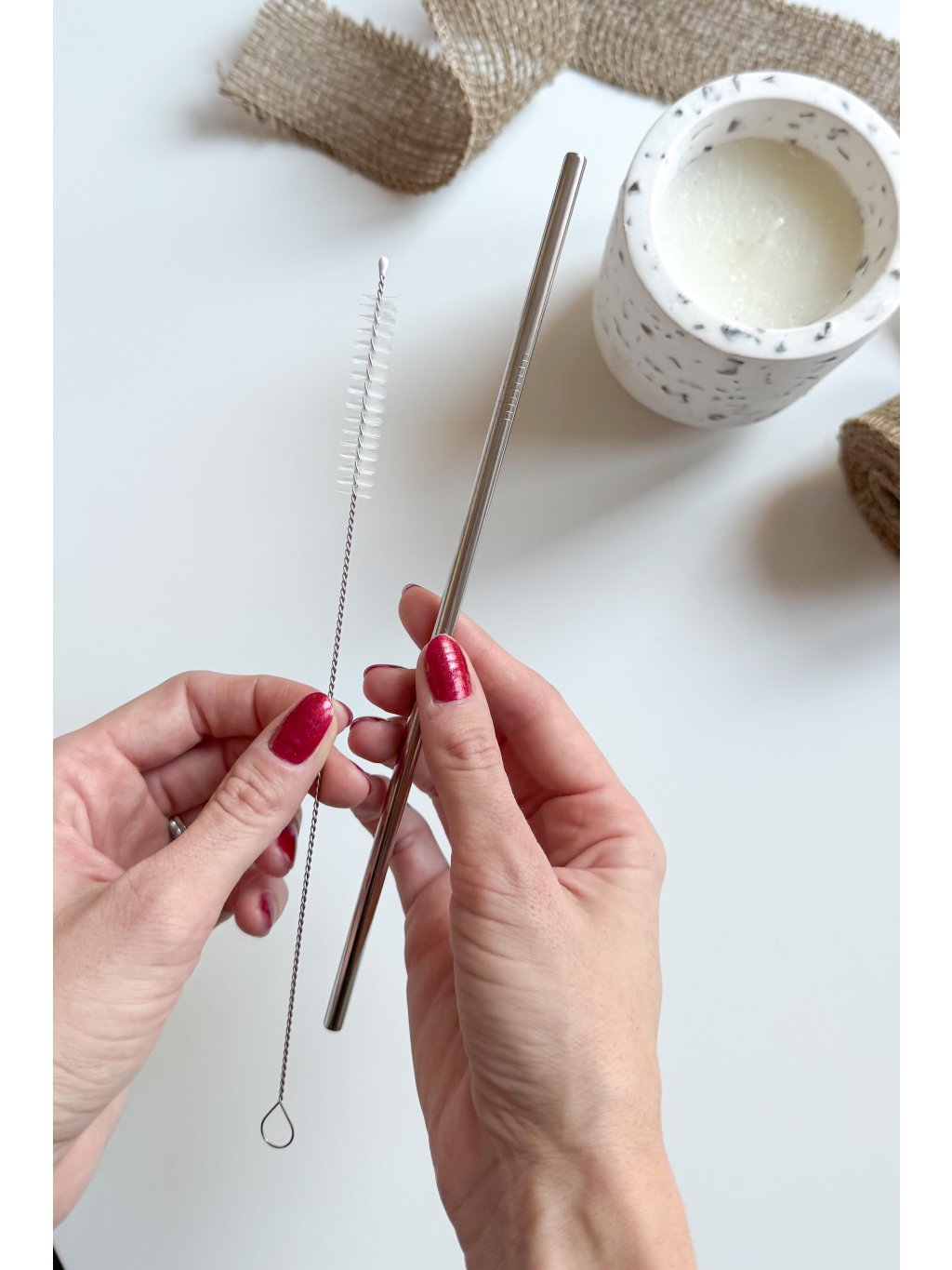 ✅ Kompletní sada – kovové brčko + čistítko v balení.