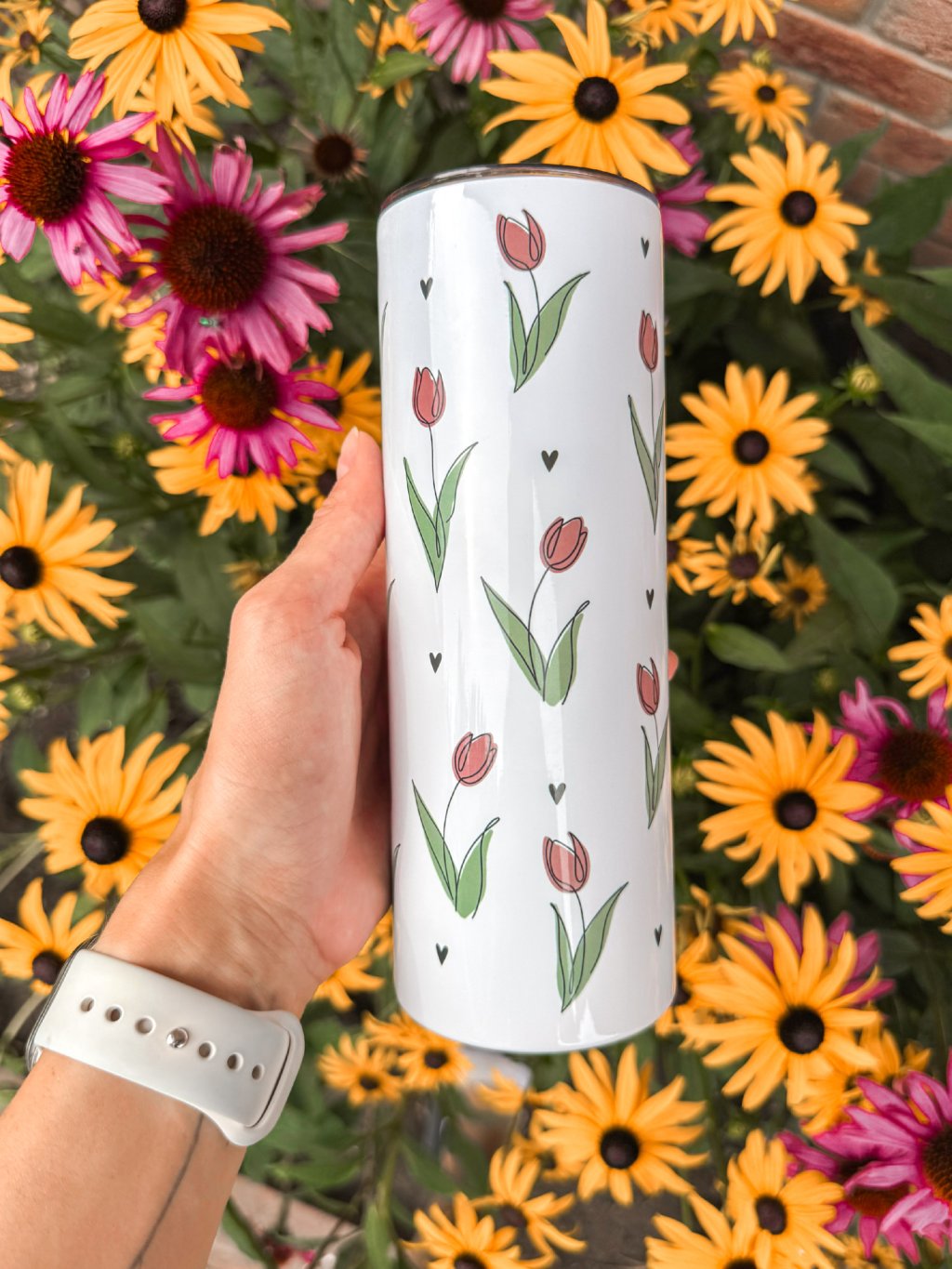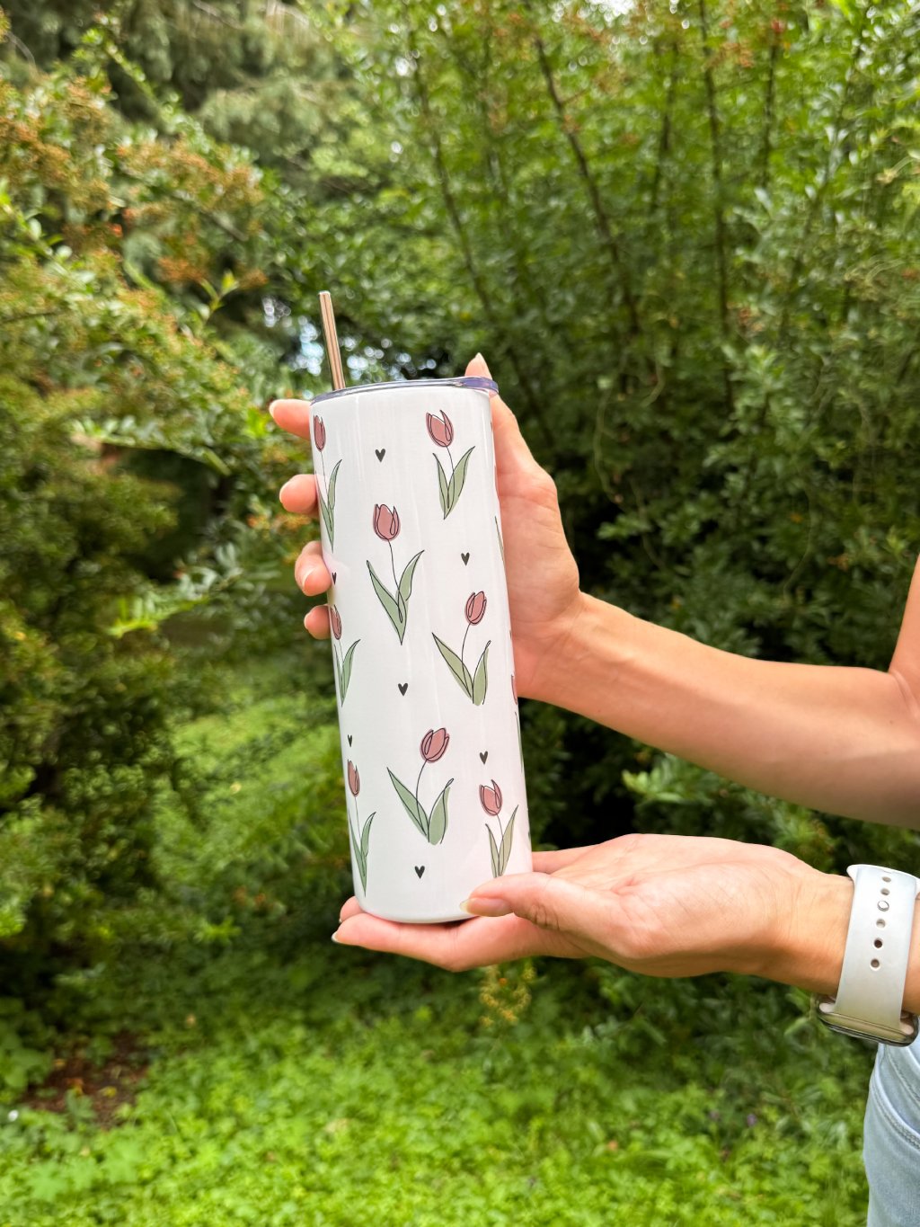 Tento nerezový termo kelímek s autorskou ilustrací tulipánů je důkazem, že i obyčejný doušek kávy nebo čaje může být malým rituálem. Design jsme tvořili my – od prvního nápadu až po finální potisk – s láskou k detailu a radostí z tvoření.